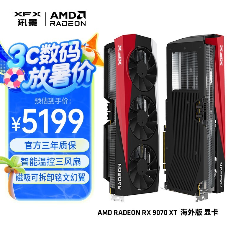 讯景AMD RX 9070 XT显卡限时特惠4999元